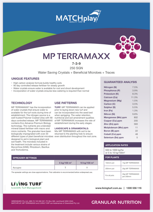 View full detailsMP Terramax Pre-Planting/Turfing/Sowing (7-3-9) + Biostimulants + Inoculants - 20kg