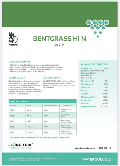 View full detailsNutrite Bentgrass High N Soluble Fertiliser 15kg