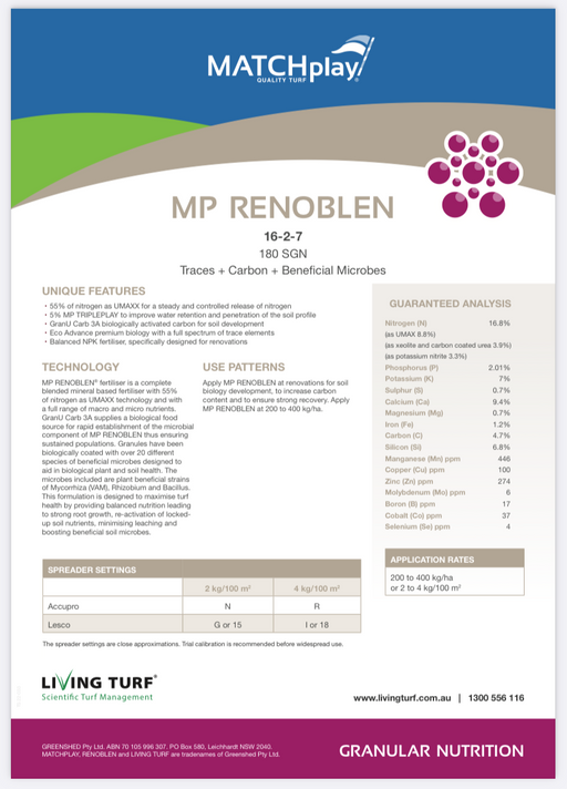 View full detailsMP Renoblen (16-2-7) + Biostimulants + 19% Carbon + 5% Tripleplay Wetting Agent + Trace - 20kg